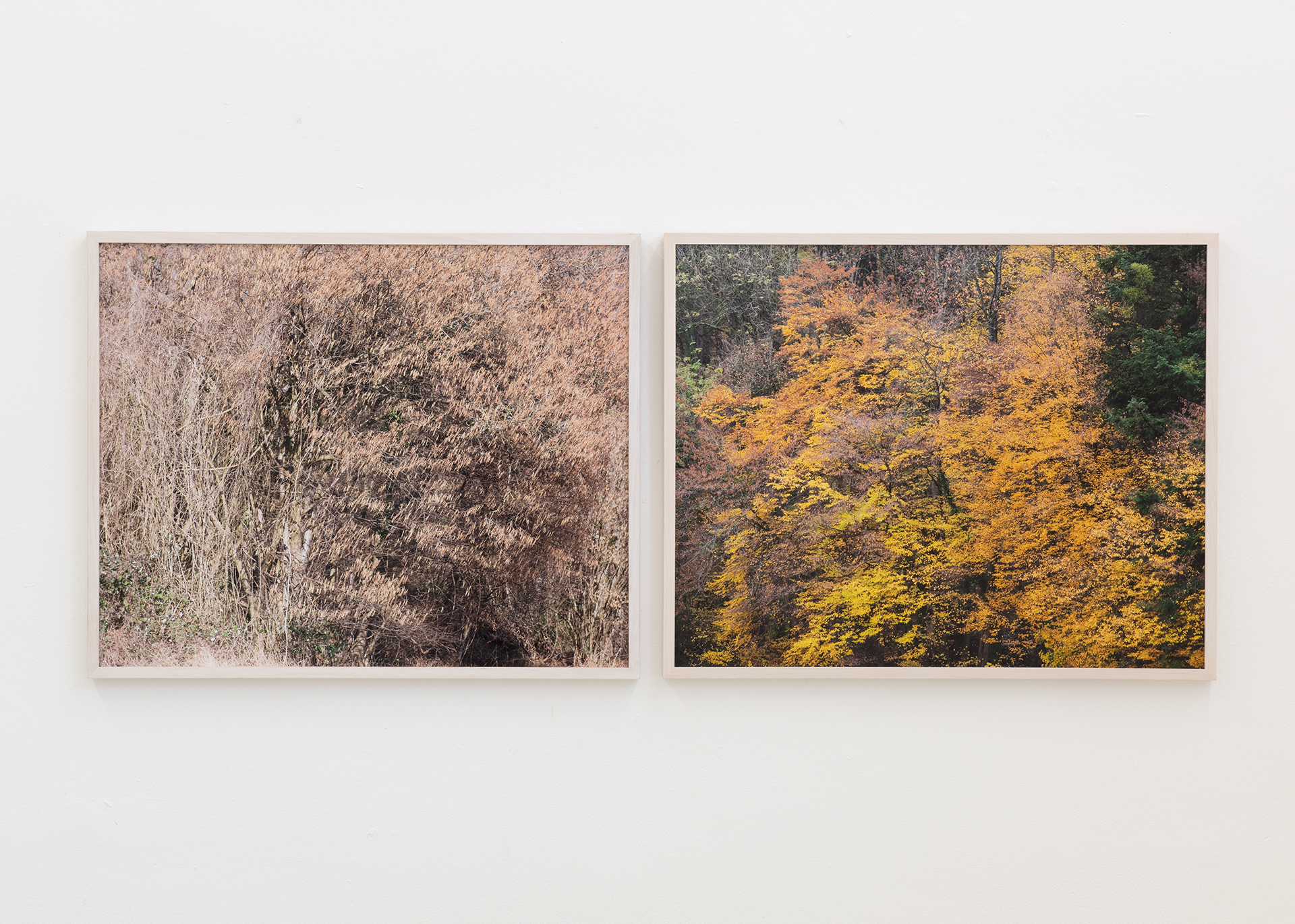 Es sind Ausschnitte von Natur, die ich fotografiere – Äste, Gräser, Blüten, Blätter, Zweige. Unscheinbares, Nebensächliches. Ich bewege mich in der mir durch unzählige Wanderungen vertrauten Natur und schaue, bis ein Bild in Beziehung mit meinem Schauen entsteht. Es ist das Ganze, das ich dann zum Bild werden lasse – alle Details auf den Bildern sind scharf, allen Ebenen wird die gleiche Bedeutung gegeben, es gibt keinen Vorder- oder Hintergrund, kein Hauptsujet, das das Bild bestimmt und den Blick leitet. Zumeist entsteht nur eine einzige Fotografie, die ich nicht digital bearbeite.